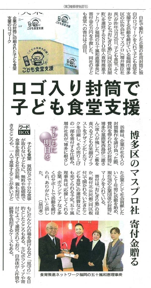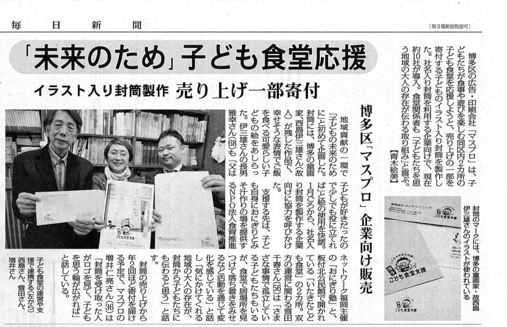 封筒を通じた博多のこどもたちへ支援